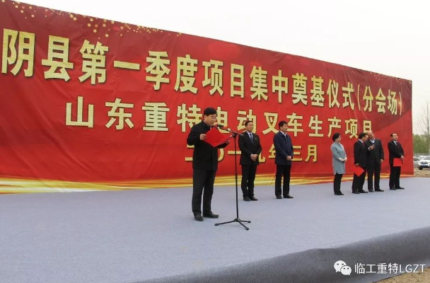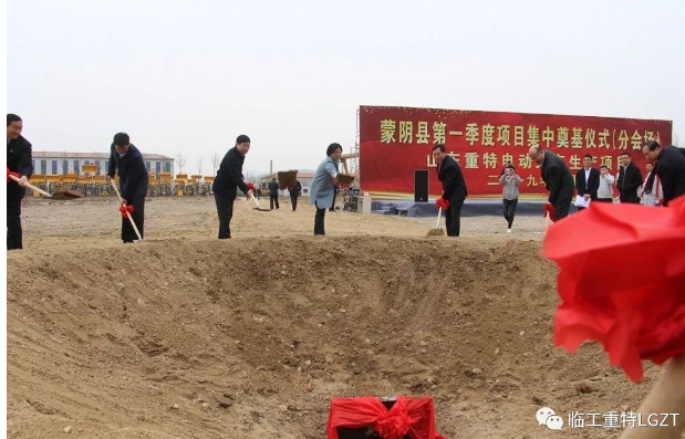2019年3月29日上午10時(shí),在臨工重特南廠(chǎng)區(qū)電動(dòng)叉車(chē)生產(chǎn)項(xiàng)目現(xiàn)場(chǎng)舉行了隆重的奠基儀式。蒙陰縣縣長(zhǎng)王麗云、縣委常委、常務(wù)副縣長(zhǎng)劉玉華、經(jīng)濟(jì)開(kāi)發(fā)區(qū)黨工委書(shū)記公茂棟、集團(tuán)董事長(zhǎng)趙沂斌、公司總經(jīng)理李述華等領(lǐng)導(dǎo)出席儀式并發(fā)表了熱情洋溢的講話(huà)。經(jīng)濟(jì)開(kāi)發(fā)區(qū)各單位負(fù)責(zé)人以及各兄弟單位的領(lǐng)導(dǎo)也出席項(xiàng)目開(kāi)工儀式。