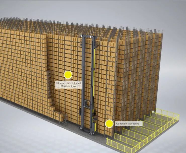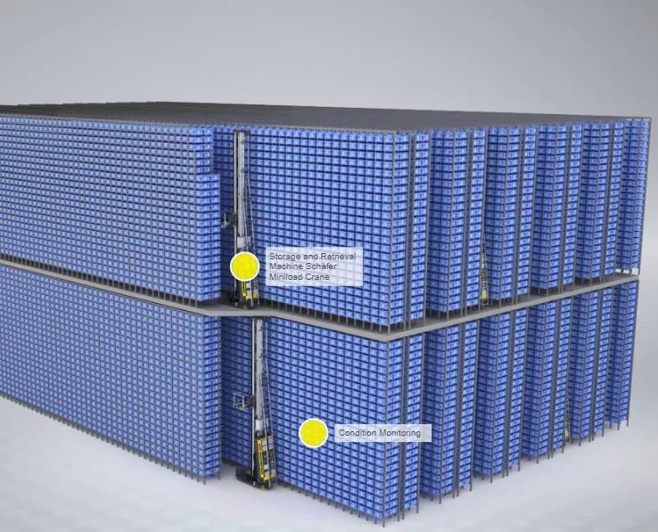 所有存取系統(tǒng)的行程和升降機(jī)驅(qū)動(dòng)電機(jī)和變速箱的狀態(tài)監(jiān)控共執(zhí)行42個(gè)舍弗勒SmartCheck設(shè)備。