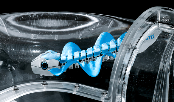 作為全球自動化技術和仿生機器人領域的領先廠商,費斯托在本資展會上重點展示了未來自動化概念和仿生概念下的產品,包括采用鰭片驅動的水下機器人BionicFinWave,模塊化氣動輕型機器人BionicSoftArm和仿生氣動軟體抓手BionicSoftHand,以及工廠自動化的一些創(chuàng)新技術。