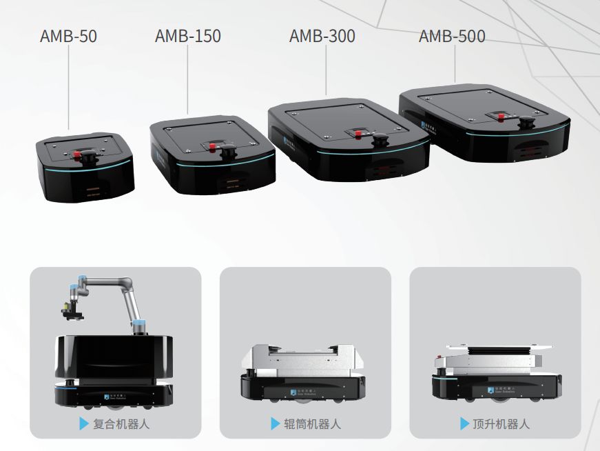 通過(guò)激光SLAM算法,AMB系列無(wú)人搬運(yùn)底盤實(shí)現(xiàn)了高精準(zhǔn)定位,達(dá)到了±5mm*;同時(shí)提供50kg、150kg、300kg、500kg多規(guī)格擴(kuò)展平臺(tái),滿足不同行業(yè)的負(fù)載及場(chǎng)景需求,可配合機(jī)械手、輥筒、頂升、皮帶、云臺(tái)、顯示屏等,實(shí)現(xiàn)一種底盤,多種應(yīng)用;還支持反光板、多激光自然輪廓、慣導(dǎo)、攝像頭等多種導(dǎo)航方式任意切換,滿足現(xiàn)代工廠不同的智能化需求。