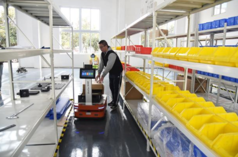 4月3日,在山東省鄒城市機(jī)電產(chǎn)業(yè)園,一家機(jī)器人高新技術(shù)企業(yè)的技術(shù)人員對(duì)一款機(jī)器人產(chǎn)品進(jìn)行測(cè)試。