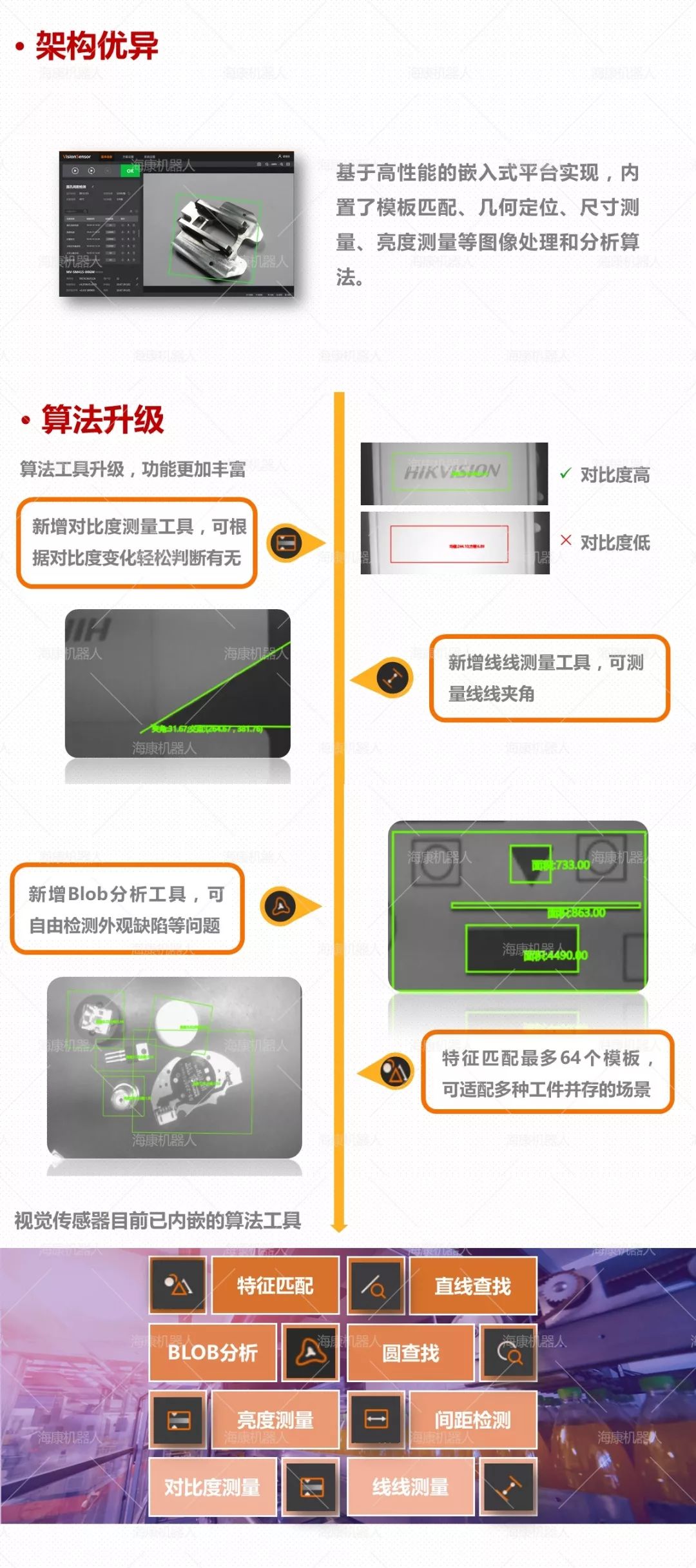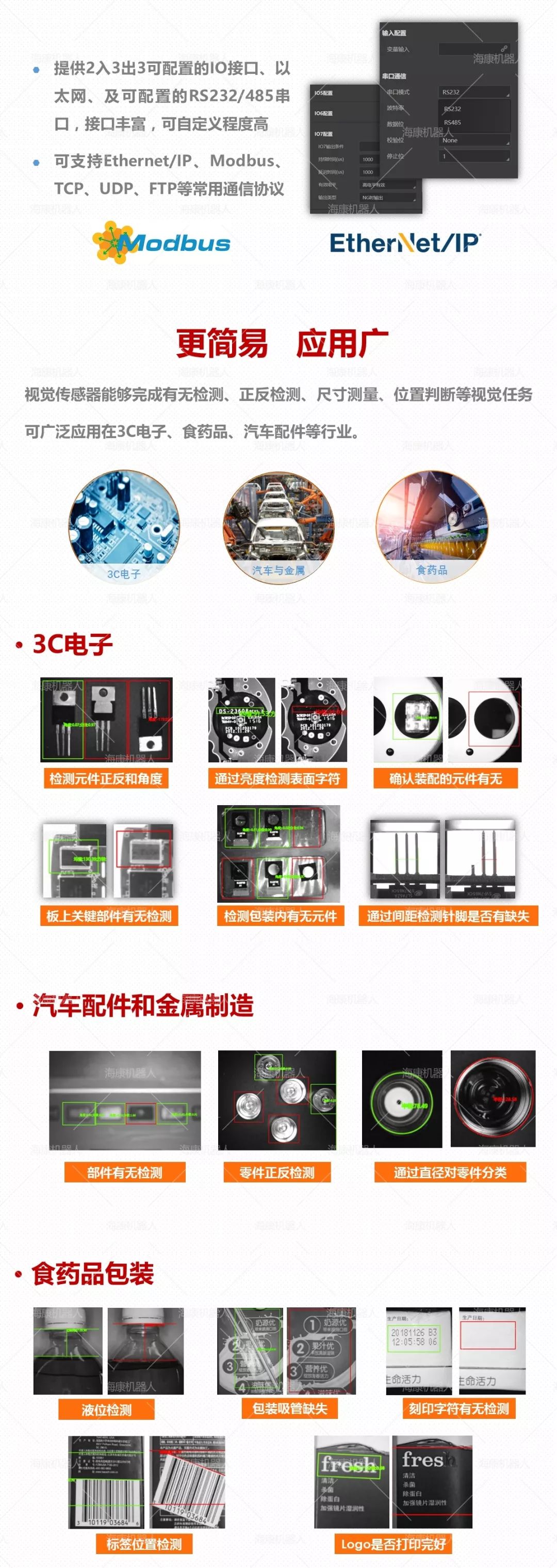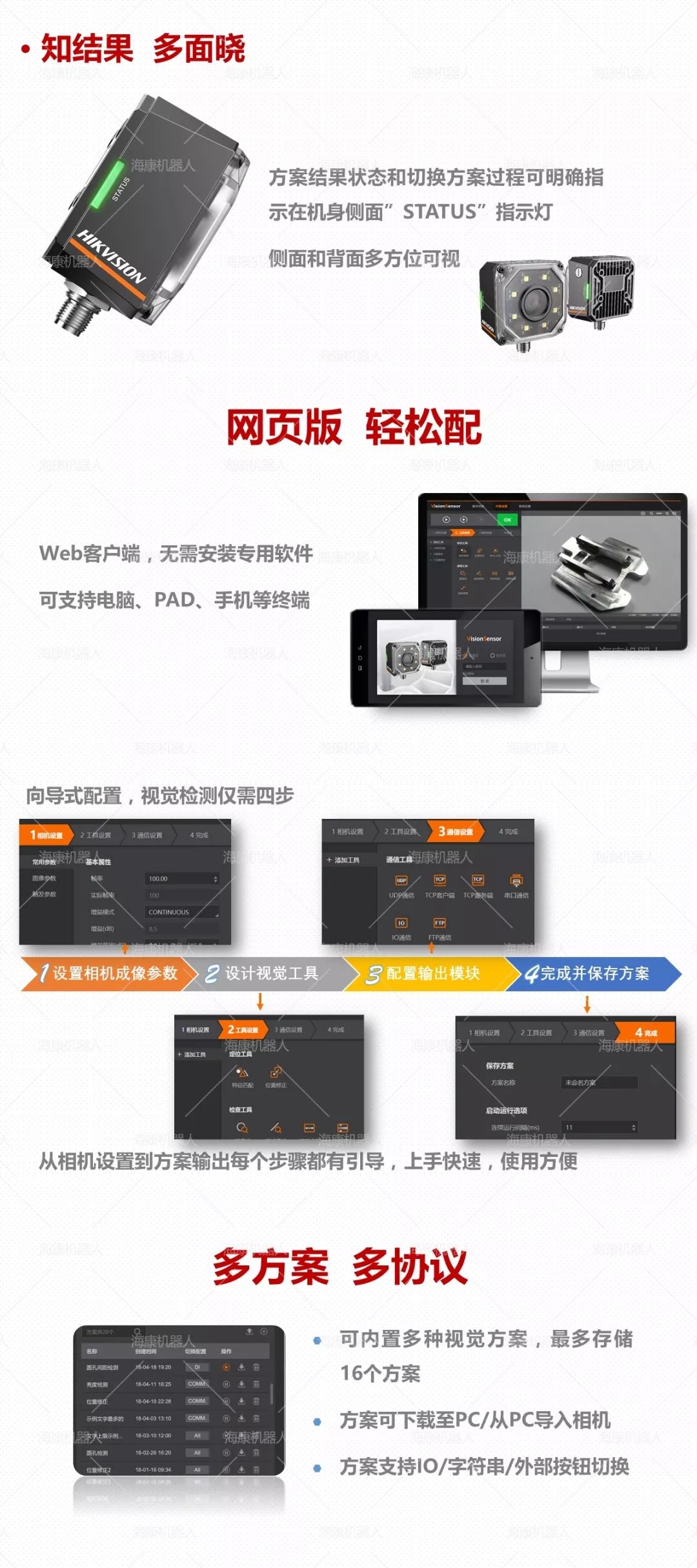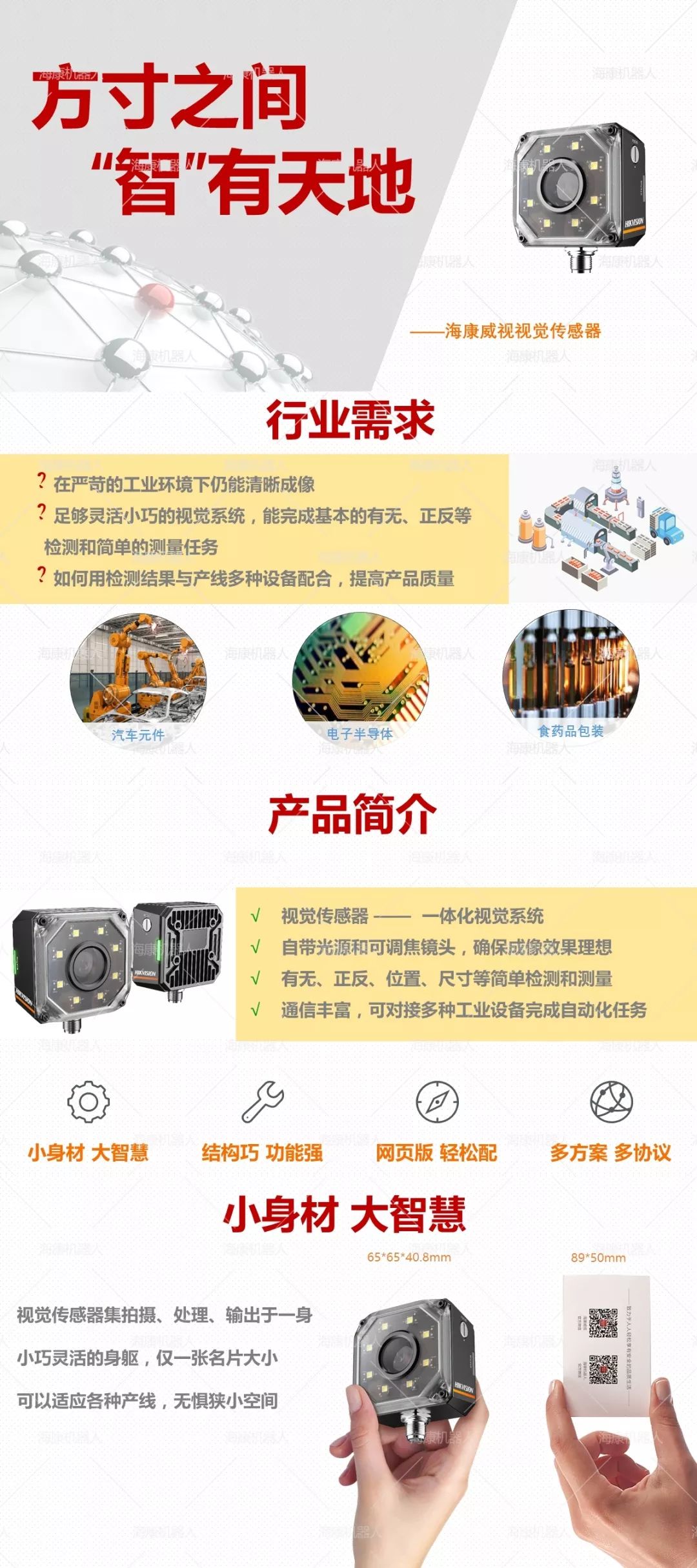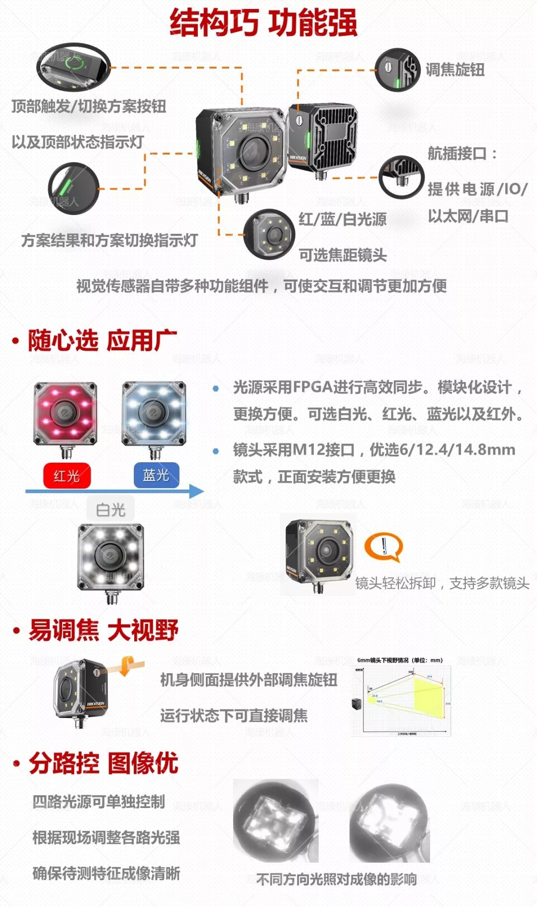 ???/a>威視視覺傳感器將給你答案。它可在機身內(nèi)部實現(xiàn)有無、正反、位置、尺寸等視覺檢測和測量,易于成像、調(diào)試的結(jié)構(gòu)和獨特的Web端配置工具讓架設(shè)更加方便。視覺傳感器小巧機身里蘊含強大實力,是輕量級視覺檢測任務(wù)的不二之選。