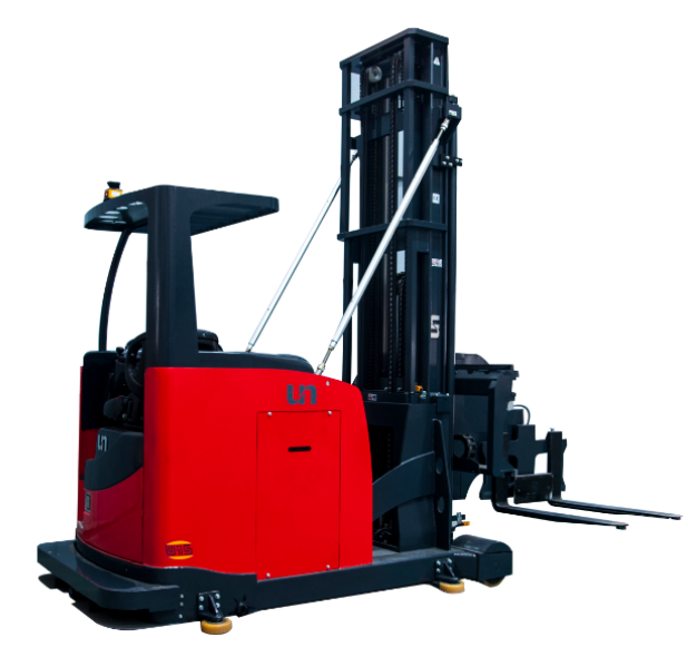 該款“窄通道三向AGV叉車”集成普通叉車式AGV” 、高門架式AGV及有軌