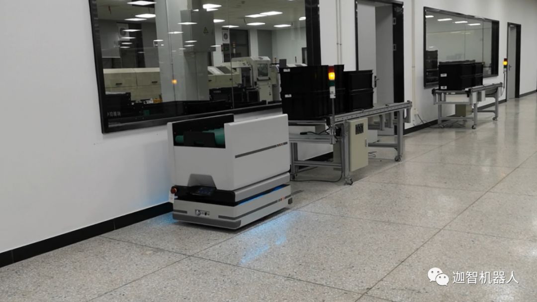 采用了智能物流解決方案后,所有的物料輸送工作都交由迦智科技的EMMA200來承擔(dān),實(shí)現(xiàn)了車間物料的智能、高效、精準(zhǔn)、安全輸送。當(dāng)某條產(chǎn)線完成了一項(xiàng)生產(chǎn)任務(wù)需要換線時(shí),調(diào)度管理系統(tǒng)會發(fā)出指令信息,EMMA200即將對應(yīng)的物料從自動(dòng)料倉輸送至備件區(qū)下料點(diǎn),自動(dòng)下料;而當(dāng)有物料通過升降機(jī)送達(dá)該樓層時(shí),EMMA200也會根據(jù)調(diào)度系統(tǒng)的指令,運(yùn)行至樓層升降機(jī)的AGV接口處,將物料輸送到自動(dòng)料倉入庫,并將空料車送回,依次循環(huán)。