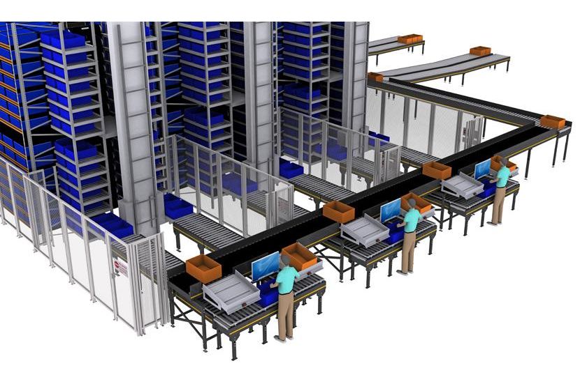箱式滾筒輸送機與每個巷道相連,將產(chǎn)品從巷道運送到操作員工作站。每一操作員工作站前方最多可以排列6個托盤,確保作業(yè)連續(xù)不間斷。