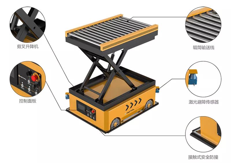 OMV運(yùn)載機(jī)器人能在狹小的空間與鏈條、皮帶、輥筒等輸送線對(duì)接,完成柔性化的物料輸送,實(shí)現(xiàn)多種物料形式輸送,如托盤式、紙箱式、料框式物料等;可根據(jù)工況選擇是否帶有舉升功能形式的全向車。