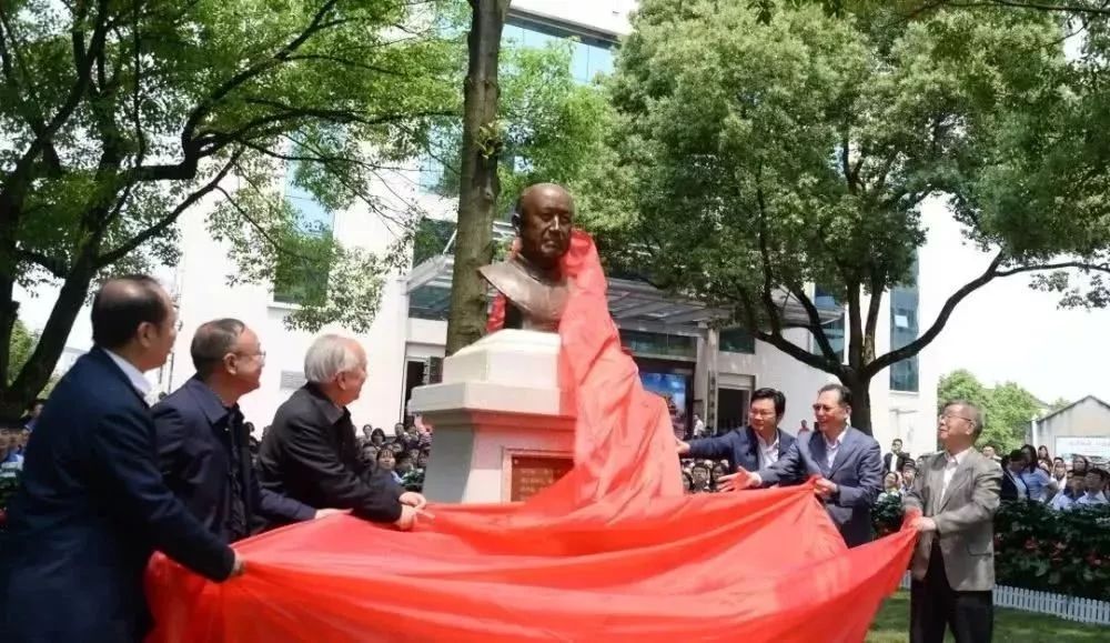 (全國政協(xié)委員、國有重點大型企業(yè)監(jiān)事會主席孫來燕;錢學(xué)森長子、上海交大錢學(xué)森圖書館館長錢永剛;瀏陽市人民政府市長吳新偉;北京航空航天大學(xué)原校長沈士團(tuán);湖南大學(xué)校長助理李樹濤;中央美院教授、著名藝術(shù)家吳嘯海共同為“錢學(xué)森銅像”揭幕)
