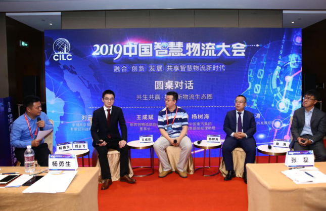中儲南京智慧物流科技有限公司戰(zhàn)略研究院院長劉云飛、新農(nóng)創(chuàng)物流供應(yīng)鏈董事長王成斌、中國重汽集團銷售部總經(jīng)理助理楊樹海、殼牌中國新業(yè)務(wù)發(fā)展經(jīng)理席濤圍繞共生共贏,打造新物流生態(tài)圈進行了圓桌對話。