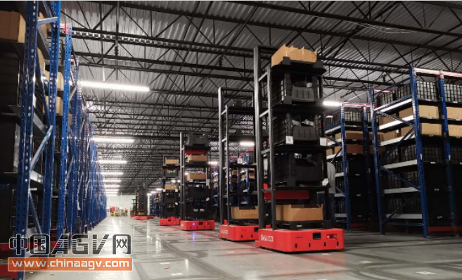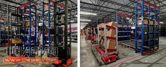 系統(tǒng)指令從貨架上叉取存儲(chǔ)目標(biāo)SKU的貨盒搬運(yùn)至揀選工作站臺(tái),而且每次可以叉取和運(yùn)送所需目標(biāo)SKU的貨盒5個(gè),這樣的單次有效效率非常高。