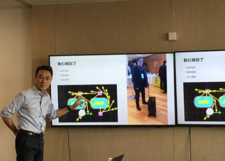齊歐介紹,整體的技術(shù)分布分為四部分,一部分是對所有傳感器的能力的掌握,包括慣導(dǎo),包括單目攝像頭,多目攝像頭,深度攝像頭等。第二部分是,利用這些傳感器收集的信息,一方面是做神經(jīng)網(wǎng)絡(luò)的這些測算,一方面做環(huán)境的VSLAM,就是視覺的環(huán)境建圖和視覺的機(jī)器人定位,讓機(jī)器人知道環(huán)境是怎么樣,知道自己在哪里,然后做路徑?jīng)Q策和底盤控制。第三部分,決策,包括本機(jī)的和云端的。第四部分,驅(qū)動底盤有很多種,叉車的底盤是三輪的,行李箱是差速的,靈動科技可以做多底盤的控制。