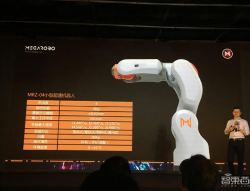 據(jù)鎂伽機(jī)器人創(chuàng)始人、CEO黃瑜清介紹,MRZ-04是一款高速、高精密度以及關(guān)節(jié)型結(jié)構(gòu)的小型六軸機(jī)器人,負(fù)載4公斤。