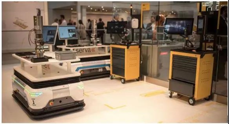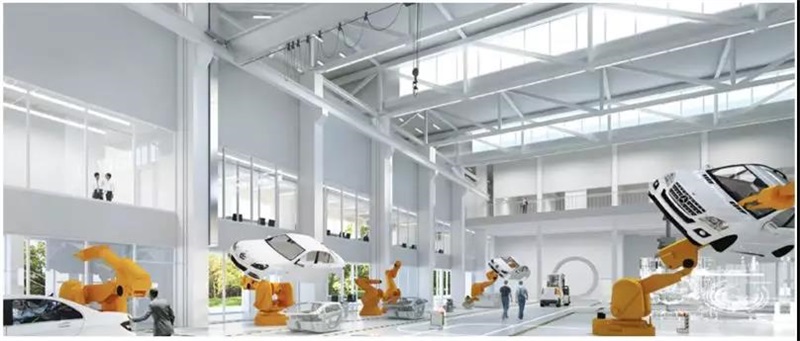 以汽車行業(yè)為例,可以設(shè)想這樣一個場景:在一個巨大的廠房里,按照矩陣式布置了20x40個加工島。每個加工島由若干臺機器人和一批工裝構(gòu)成。在加工島之間,來回穿梭著一臺臺無人駕駛的、承載著半成品汽車的 AGV 小車。當 AGV 到達某個加工島后,一群機器人立即將半成品汽車卸到加工臺上進行緊固,進行生產(chǎn)和裝配,然后再搬回到 AGV 小車上。就這樣,在流轉(zhuǎn)了若干個加工島之后,半成品的汽車終于變成了完工的汽車。