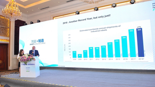 “因為中國有龐大的勞動力市場,所以目前在工業(yè)機器人的使用方面還有很大空間。反觀韓國和新加坡等勞動力相對不那么充足的國家,他們對工業(yè)機器人的使用就更加充分?!盜FR執(zhí)行委員會委員施瓦茨科夫(Patrick Schwarzkopf)在解釋這一現(xiàn)象時表示。