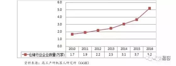 圖:2010-2016 年倉(cāng)儲(chǔ)行業(yè)企業(yè)數(shù)量