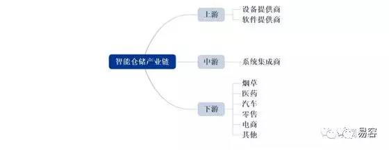 智能倉(cāng)儲(chǔ)產(chǎn)業(yè)鏈主要分為上、中、下游三個(gè)部分。上游為設(shè)備提供商和軟件提供商,分別提供硬件設(shè)備(輸送機(jī)、分揀機(jī)、AGV、堆垛機(jī)、穿梭車、叉車等)和相應(yīng)的軟件系統(tǒng)(WMS、WCS 系統(tǒng)等);中游是智能倉(cāng)儲(chǔ)系統(tǒng)集成商,根據(jù)行業(yè)的應(yīng)用特點(diǎn)使用多種設(shè)備和軟件,設(shè)計(jì)建造智能倉(cāng)儲(chǔ)物流系統(tǒng);下游是應(yīng)用智能倉(cāng)儲(chǔ)系統(tǒng)的各個(gè)行業(yè),包括煙草、醫(yī)藥、汽車、零售、電商等諸多行業(yè)。