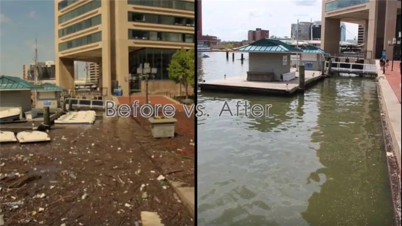 這個(gè)裝置看起來(lái),特別像一只眼睛轱轆轱轆轉(zhuǎn)的蝸牛,現(xiàn)在已經(jīng)使美國(guó)巴爾的摩的海濱大為改觀,出現(xiàn)幾十年來(lái)最干凈的狀態(tài)。