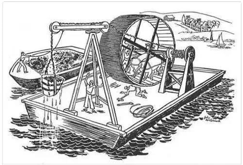浮動(dòng)的鏟斗將垃圾倒入“垃圾輪先生”的嘴里,然后,旋轉(zhuǎn)叉將垃圾提起并放到傳送帶上。當(dāng)垃圾到達(dá)頂部時(shí),就落入浮動(dòng)垃圾箱,連接到齒輪系統(tǒng)的一個(gè)巨型水輪,為垃圾收集提供動(dòng)力,當(dāng)水流移動(dòng)太慢時(shí),太陽(yáng)能電力將保持一切順利運(yùn)行。