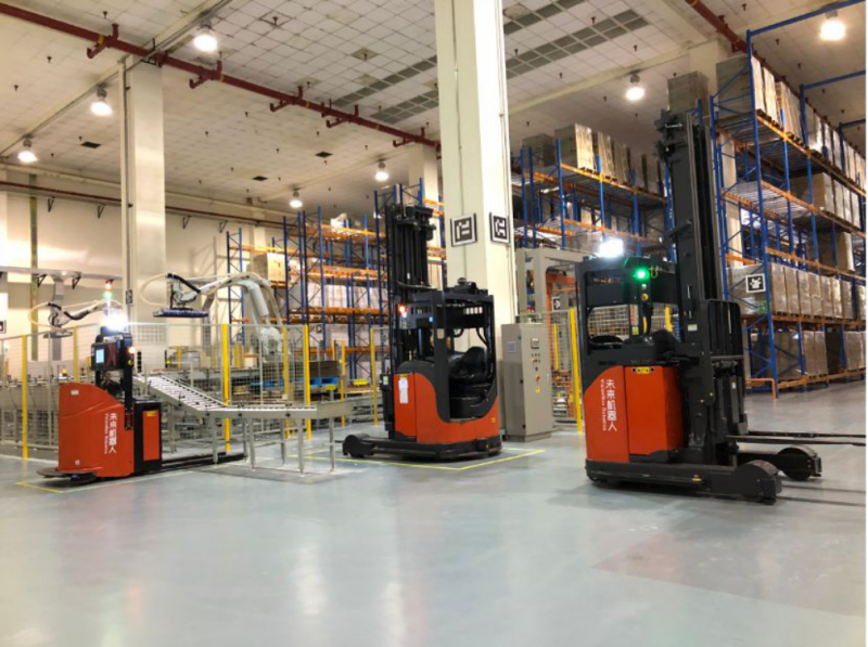 未來(lái)機(jī)器人VisionNav前移式無(wú)人叉車額定載重1.6T,運(yùn)行速度達(dá)1.5m/s,舉升高度最高可至9.4m,轉(zhuǎn)彎不停車,停位精度達(dá)±10mm,可一鍵切換自動(dòng)/手動(dòng)模式。能夠?qū)崿F(xiàn)無(wú)人搬運(yùn)、9.4m以下高位堆垛、物料檢測(cè)、貨架檢測(cè)、安全避障、故障自檢、自動(dòng)充電等功能。