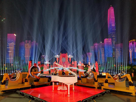 格力機器人樂隊共由6個單獨版塊、12臺機器人組成。目前該機器人可實現鋼琴、吉他、貝斯、爵士鼓、音樹、銅鑼等6種樂器的演奏,還可根據具體演奏的曲目增加樂器種類,并且可支持多首曲目快速切換演奏。