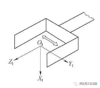 (4)工具坐標(biāo)系以安裝在機械接口上的末端執(zhí)行器為參照系(見圖4),符號為Ot、Xt、Yt、Zt。原點Ot是工具中心點;+Zt軸與工具有關(guān),通常是工具指向;在平板式夾爪型夾持器夾持時,+Yt是手指運動平面的方向。