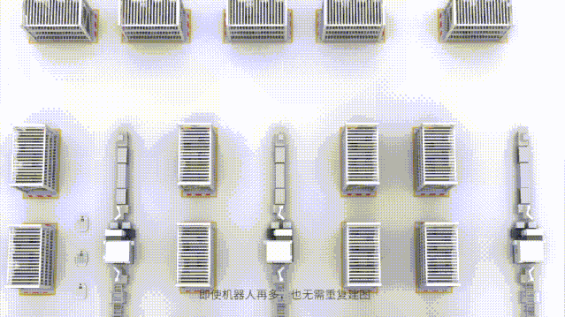 仙知機(jī)器人采用基于地圖的多傳感器系統(tǒng)辨識(shí)技術(shù),對(duì)每個(gè)機(jī)器人的物理參數(shù)、運(yùn)動(dòng)性能、系統(tǒng)延時(shí)進(jìn)行實(shí)時(shí)標(biāo)定,即使多臺(tái)移動(dòng)機(jī)器人同時(shí)作業(yè),也無需重復(fù)建圖,保證了多車運(yùn)動(dòng)的一致性,大幅提高了現(xiàn)場(chǎng)實(shí)施效率。