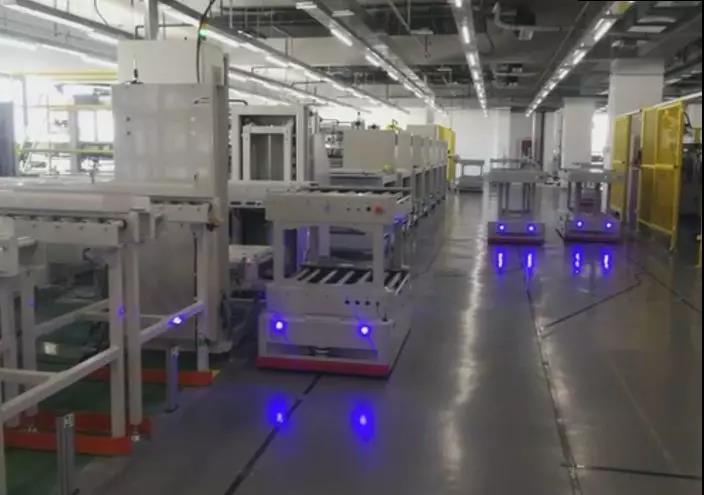 圖/國(guó)聯(lián)新能源生產(chǎn)車(chē)間-動(dòng)進(jìn)AGV正在進(jìn)行物料轉(zhuǎn)運(yùn)工作
