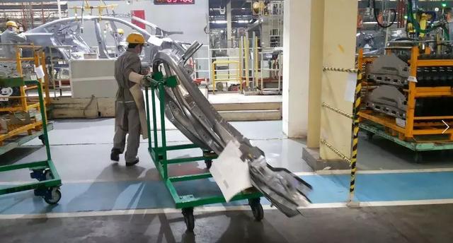 圖/某日產(chǎn)焊裝車(chē)間人工搬運(yùn)車(chē)部件