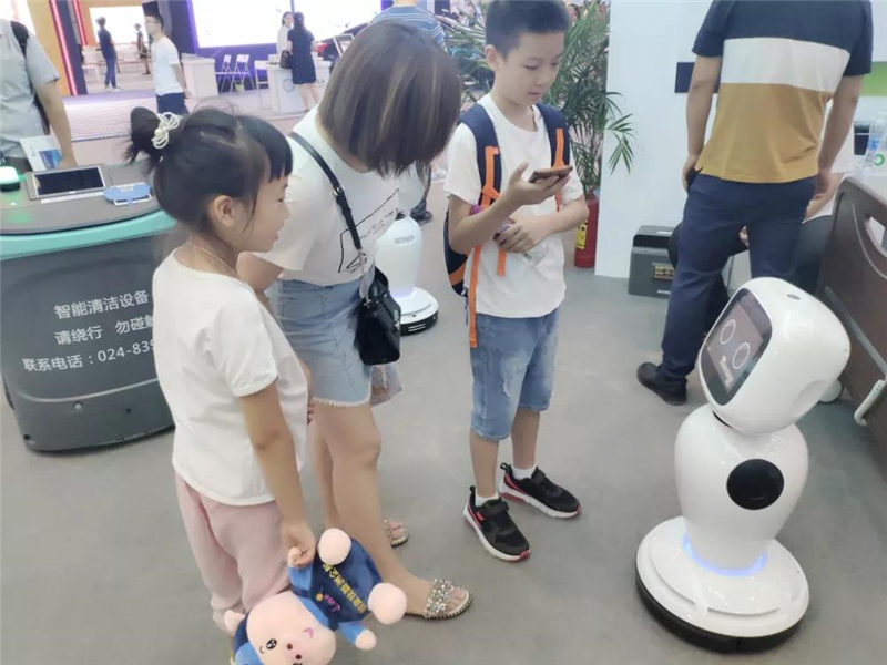 (圖)新松機(jī)器人吸引現(xiàn)場(chǎng)觀眾頻頻交流互動(dòng)