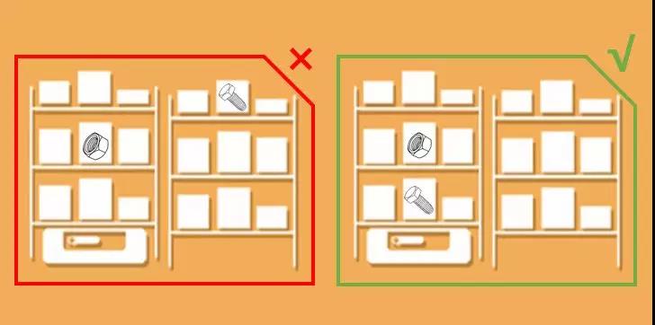 舉個簡單例子,生產(chǎn)過程中螺栓與螺母一般會配套使用,則認為這兩種物料關鍵度高,因此入庫時推薦上架到一個貨架上,出庫去產(chǎn)線時搬運一次貨架就可以實現(xiàn)這兩個物料的揀選,將會有效提高單個貨架訂單命中率,減少貨架搬運次數(shù)。