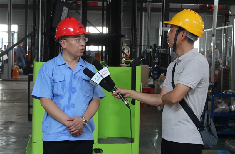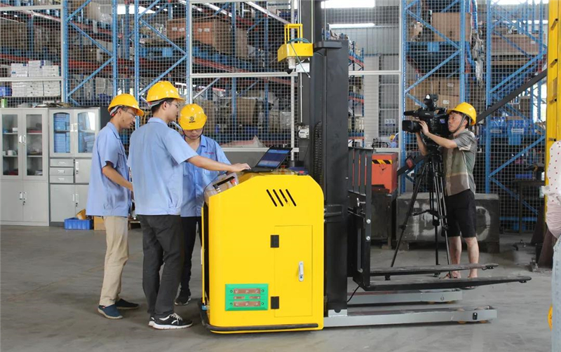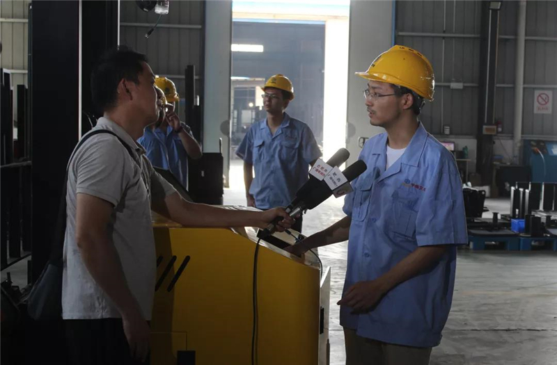 2019年8月7日,合肥市廣播電視臺(tái)記者一行來到安徽宇鋒倉儲(chǔ)設(shè)備/智能科技有限公司采訪。公司項(xiàng)衛(wèi)鋒總經(jīng)理和AGV技術(shù)工程師凌工在生產(chǎn)調(diào)試現(xiàn)場(chǎng)接受采訪。