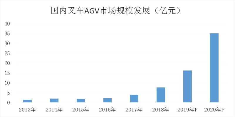 所以近年來(lái),叉車(chē)AGV拓展勢(shì)頭強(qiáng)勢(shì),而且行業(yè)銷(xiāo)量以年均超過(guò)80%的同比不斷增長(zhǎng)。數(shù)據(jù)顯示,2018年國(guó)內(nèi)銷(xiāo)量超1500臺(tái),市場(chǎng)規(guī)模將近8億,2019年市場(chǎng)規(guī)模將破15億,預(yù)測(cè)接下來(lái)的3-5年叉車(chē)AGV將迎來(lái)爆發(fā),2020年市場(chǎng)規(guī)模有望破30億。