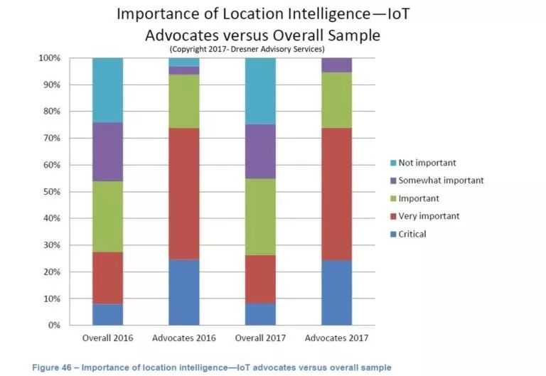 74%的物聯(lián)網(wǎng)早期采用者表示,位置智能至關(guān)重要。相反,德累斯頓咨詢(xún)服務(wù)公司(Dresner Advisory Services)的報(bào)告中,只有26%的總體樣本將位置情報(bào)列為同等重要的級(jí)別。基于iot的位置智能最有前途的用例之一是它在高度管制的制造業(yè)中簡(jiǎn)化可跟蹤性和庫(kù)存管理遵從性工作流的潛力。預(yù)計(jì)在2018年,ERP和庫(kù)存管理軟件供應(yīng)商將推出利用物聯(lián)網(wǎng)位置智能的新應(yīng)用程序,以簡(jiǎn)化全球范圍內(nèi)的可追溯性和供應(yīng)鏈合規(guī)。