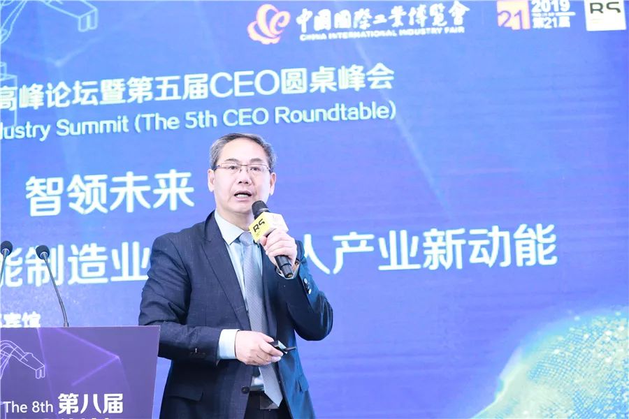 圖:新松公司總裁曲道奎在大會現(xiàn)場發(fā)表主題演講