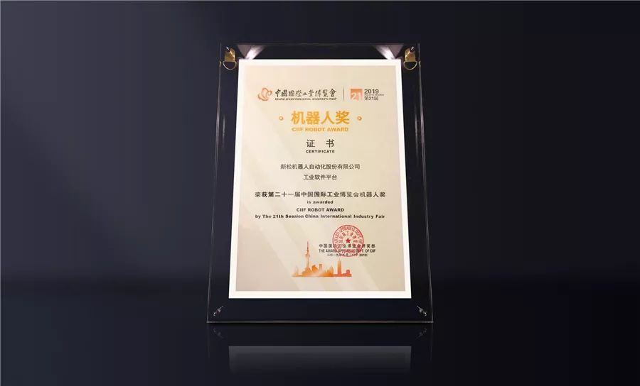 圖:新松工業(yè)軟件&控制平臺榮獲中國工博會機器人專業(yè)獎