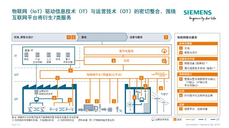 具體實(shí)施過(guò)程中,西門(mén)子對(duì)外又將其劃分為七個(gè)步驟,包括:戰(zhàn)略咨詢(xún)、原型制作和設(shè)計(jì)、設(shè)備連接、落實(shí)運(yùn)營(yíng)技術(shù)系統(tǒng)、管理和整合物聯(lián)網(wǎng)平臺(tái)接口、針對(duì)數(shù)字化實(shí)例開(kāi)發(fā)應(yīng)用、運(yùn)營(yíng)平臺(tái)和設(shè)備連接。