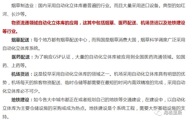 自動(dòng)化立體庫(kù)是一個(gè)總的概念,根據(jù)不同行業(yè)、不同需求層次,可以定向生產(chǎn)配套不同規(guī)模、不同樣式的立體庫(kù)系統(tǒng),以便于立體庫(kù)在各個(gè)行業(yè)更好的應(yīng)用。自動(dòng)化立體倉(cāng)庫(kù)在以下三個(gè)領(lǐng)域應(yīng)用較為廣泛,它們分別是醫(yī)藥領(lǐng)域、汽車(chē)制造領(lǐng)域、煙草制造與流通領(lǐng)域。