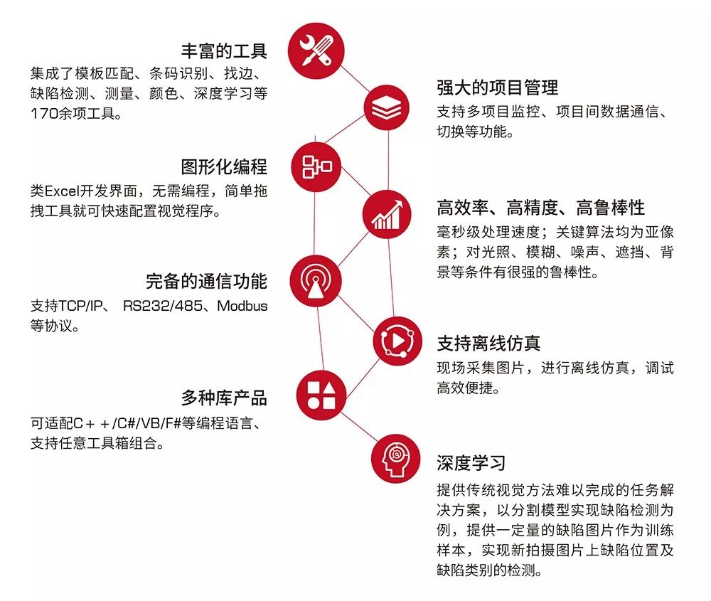 可滿足機(jī)器人引導(dǎo)、測(cè)量、檢測(cè)、識(shí)別等全線應(yīng)用需求。廣泛應(yīng)用于工業(yè)機(jī)器人、汽車、半導(dǎo)體、電子產(chǎn)品、食品和飲料、制藥、日化品、包裝、物流、印刷、醫(yī)療設(shè)備、玻璃、金屬等行業(yè)。
