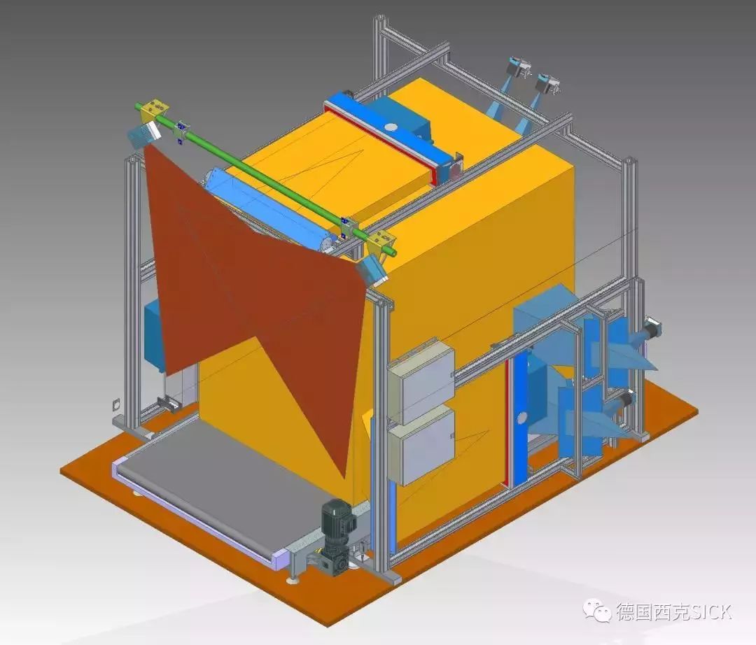 下圖為高性能五面條碼自動(dòng)掃描及體積測(cè)量系統(tǒng)配置示意圖: