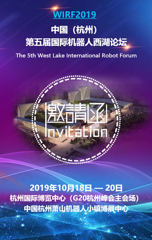 中國(guó)(杭州)第五屆國(guó)際機(jī)器人西湖論壇,將于2019年10月18日-20日,在杭州國(guó)際博覽中心召開(kāi)。