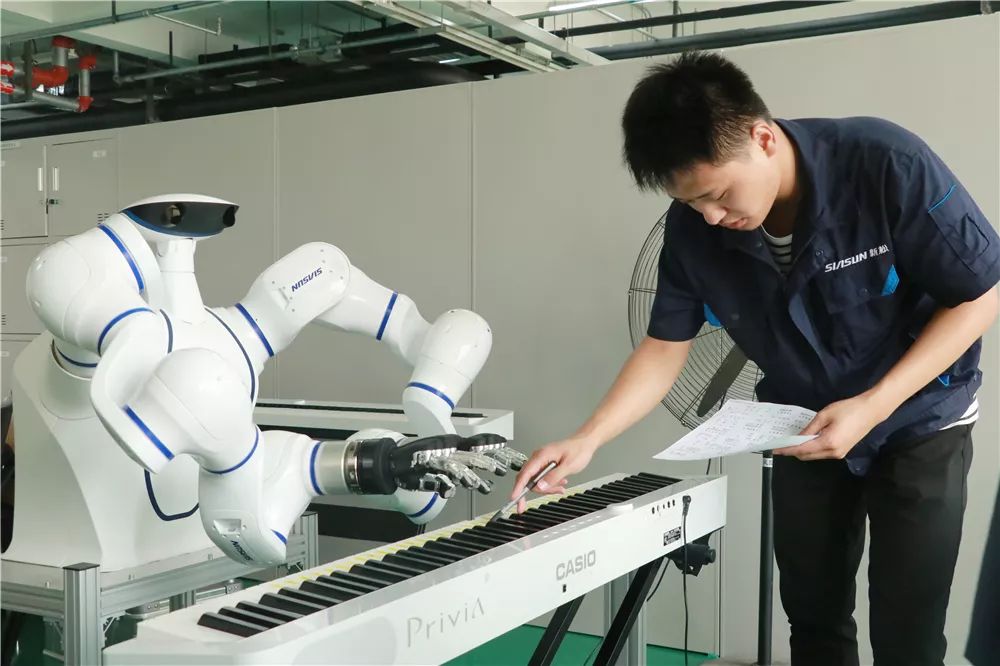 雙臂協(xié)作機(jī)器人是新松為了滿足工業(yè)4.0時(shí)代新制造模式需求所研發(fā)的產(chǎn)品,集成了雙目視覺識(shí)別、力反饋、手動(dòng)拖拽示教、碰撞檢測等技術(shù),是機(jī)器人與人工智能的完美融合體。更重要的是,基于人機(jī)協(xié)作技術(shù),該機(jī)器人可以實(shí)現(xiàn)和人類的“零距離接觸”,而不會(huì)對(duì)人類造成傷害。主角定下來了,下一步挑戰(zhàn)就是如何教會(huì)“他”彈好鋼琴。