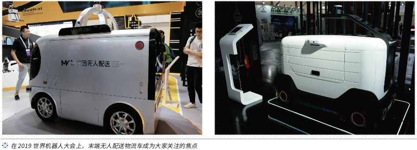 末端物流配送也是一個重要應(yīng)用領(lǐng)域。隨著電子商務(wù)的普及,廣大消費者使用快遞服務(wù)已經(jīng)越來越普遍與頻繁了。然而由于種種原因,快遞包裹“最后100米”的交付過程障礙重重,往往不能順利完成。這種情況下,末端無人配送物流車成為一項重要選擇。在“2019 世界機器人大會”上,末端無人配送物流車是物流機器人展館的主推展品,京東物流、行深智能、美團外賣、9號機器人等都推出了不同性能的無人配送物流車,引起大家的高度關(guān)注。