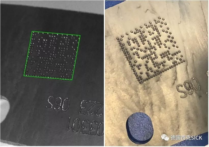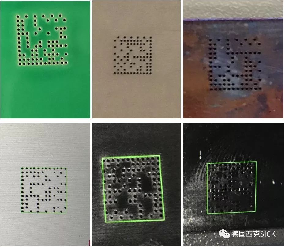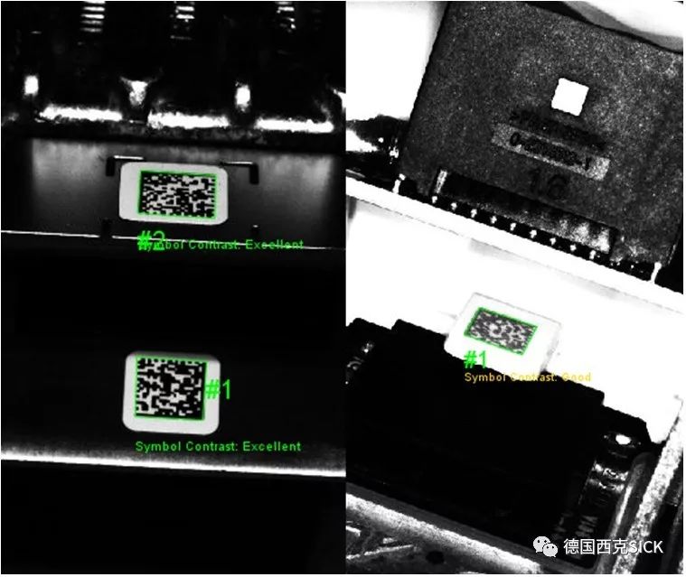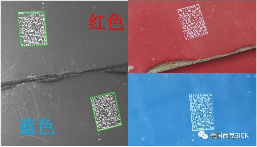 對于高反光的不銹鋼金屬表面,使用SICK特有的紅/藍(lán)光源配合使用,采用多模板功能Automatic Parameter Switching(APS),即使是低對比度的條件,也能夠完美應(yīng)對大范圍,多個二維碼的快速識別應(yīng)用。
