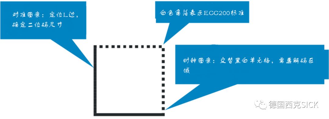 Data Matrix最常見為正方形樣式。兩條黑邊,配上其他區(qū)域的星星點點,打碼四周再分布至少一個模塊的尺寸的靜區(qū),用于保證讀碼穩(wěn)定。