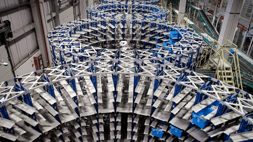 太倉(cāng)博特精工依客戶需求,成功研發(fā)、設(shè)計(jì)、制造、安裝出環(huán)形機(jī)器人貨架,以小身材、大容量、高效率、低成本的優(yōu)勢(shì)在倉(cāng)儲(chǔ)貨架市場(chǎng)擁有一席之地。