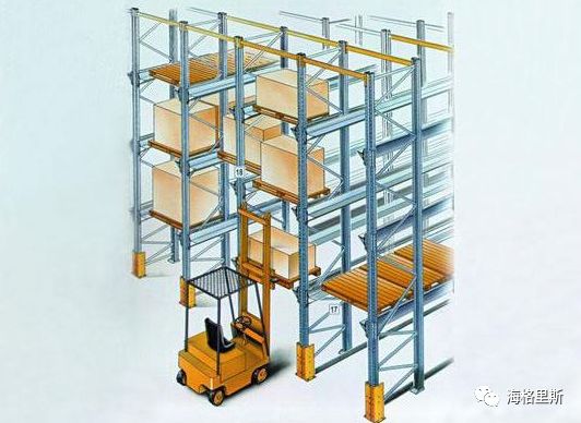缺點(diǎn)是:叉車需要開(kāi)入貨架內(nèi)部操作,危險(xiǎn)性較高,操作者在貨架內(nèi)部的視野不夠開(kāi)闊,光線不足。對(duì)于空間利用率有不足,對(duì)6米以上空間無(wú)法作業(yè),同時(shí)穩(wěn)定性存在缺陷。同時(shí)此貨架局限于先進(jìn)先出原則。