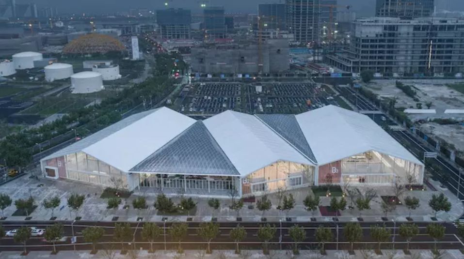 使用機(jī)器人和無人機(jī)提高效率的嘗試已經(jīng)不是第一次。上海的創(chuàng)盟國(guó)際建筑設(shè)計(jì)公司曾在 2018 年在 100 天內(nèi)完成了上海 Venue B 會(huì)議中心的建造,使用了機(jī)器人輔助設(shè)計(jì)和施工,例如使用 3D 打印會(huì)議中心咖啡館的拱門、吧臺(tái)和桌椅。