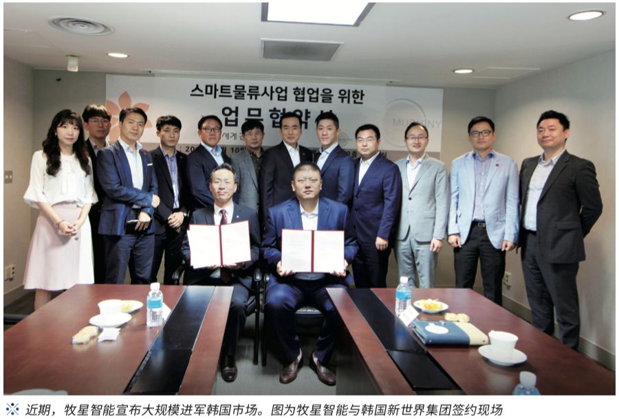 7月,牧星智能也宣布大規(guī)模進軍韓國市場,與韓國新世界集團在韓國首爾簽署韓國連鎖超市巨頭易買得旗下Everyday智能物流中心項目采購協(xié)議,易買得將在其物流中心部署數(shù)百臺牧星智能機器人。