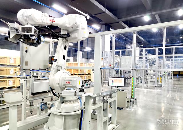 工廠內(nèi)的每個工站通過機器人串聯(lián),每個工站都可以一站多用,通過快換裝置更換機械手后,就可以生產(chǎn)不同產(chǎn)品。