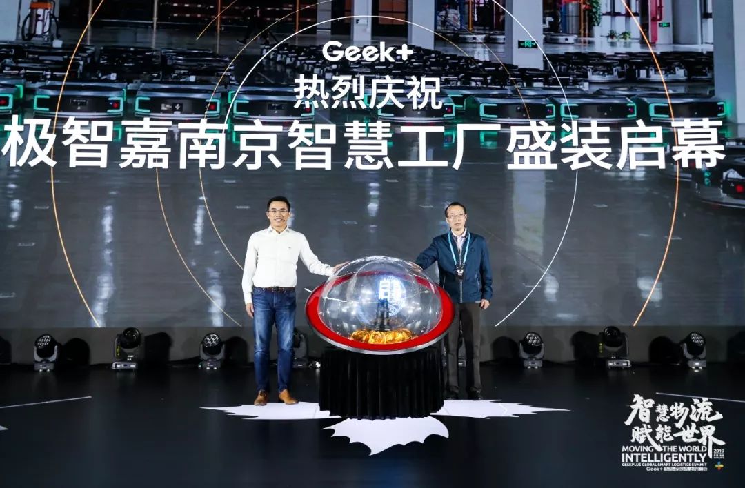 與極智嘉CEO鄭勇一起為南京智慧工廠啟幕。