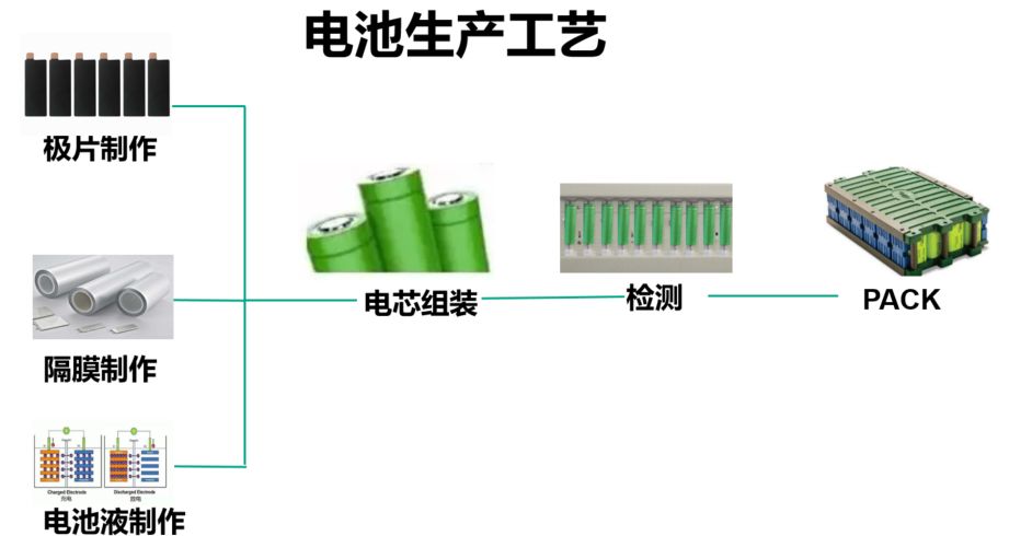 電池生產(chǎn)設(shè)備是指在電池生產(chǎn)工藝中涉及到的設(shè)備,如漿料攪拌、極片涂布、電芯卷繞、電芯疊片、電芯注液、分容測試、成品包裝等。